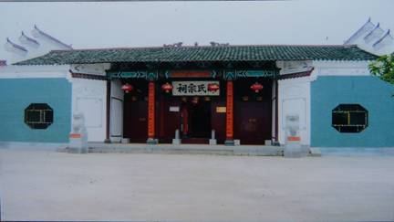 宗祠前面三方有砖砌围墙,高约3.5米,围墙内是麻石墁地的广场。从广场上五步台阶就是宗祠大门。